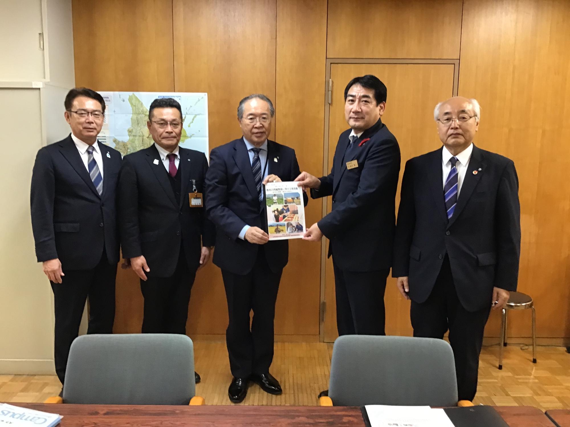 10月22日、北海道国営農地再編整備事業推進連絡協議会監事として、ほかの役員の皆様と北海道開発局武井農業水産部長をはじめ、鈴木北海道農政部長、北海道議会議員の皆さんに事業の着実な推進を要請してまいりました。
