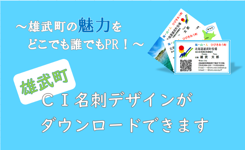 雄武町の統一イメージマークである「雄武町CIマーク」の利用促進を図るため、町民の皆さまであればどなたでもご利用いただけるCI名刺デザイン(Word形式)を作成しました。