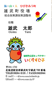 ‐ 名刺デザイン、イラストの著作権は雄武町に帰属し、画像の著作権については、撮影者本人に帰属します。これらは雄武町のPRを目的として使用することができます。