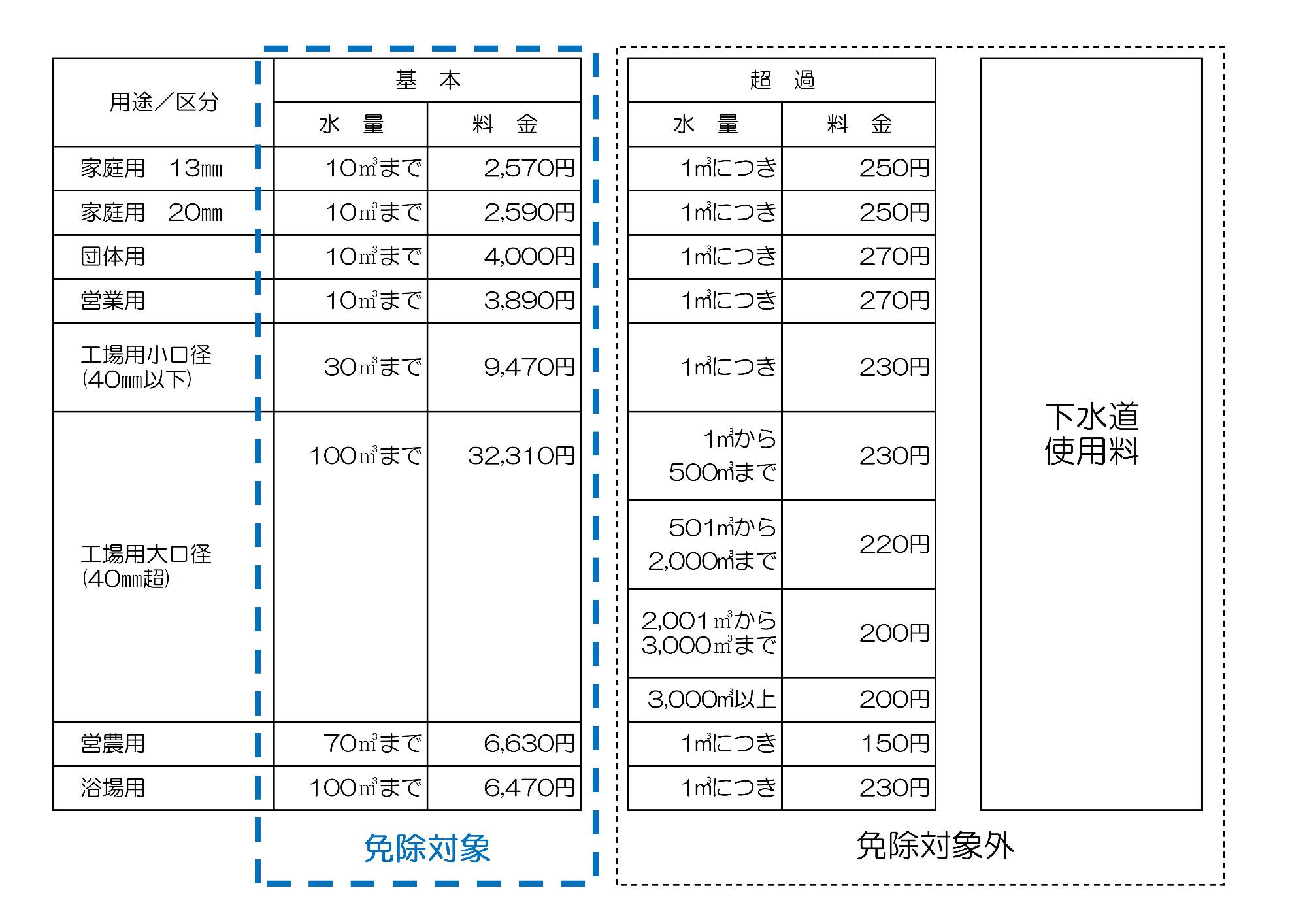 ※基本水量を超えた使用料に伴う超過料金は免除対象外です。