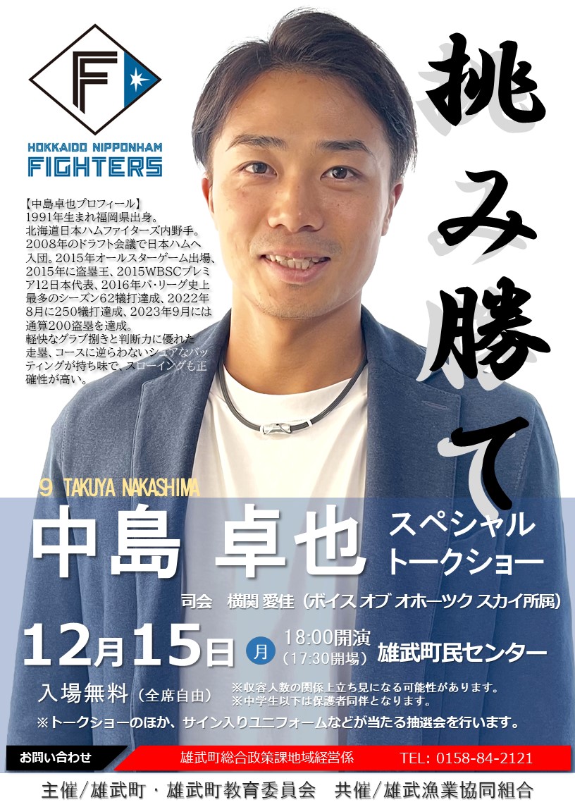 《挑み勝て》と題して、北海道日本ハムファイターズ所属の中島卓也選手によるスペシャルトークショーを開催!現役プロ野球選手の貴重な生の声をお届けします。